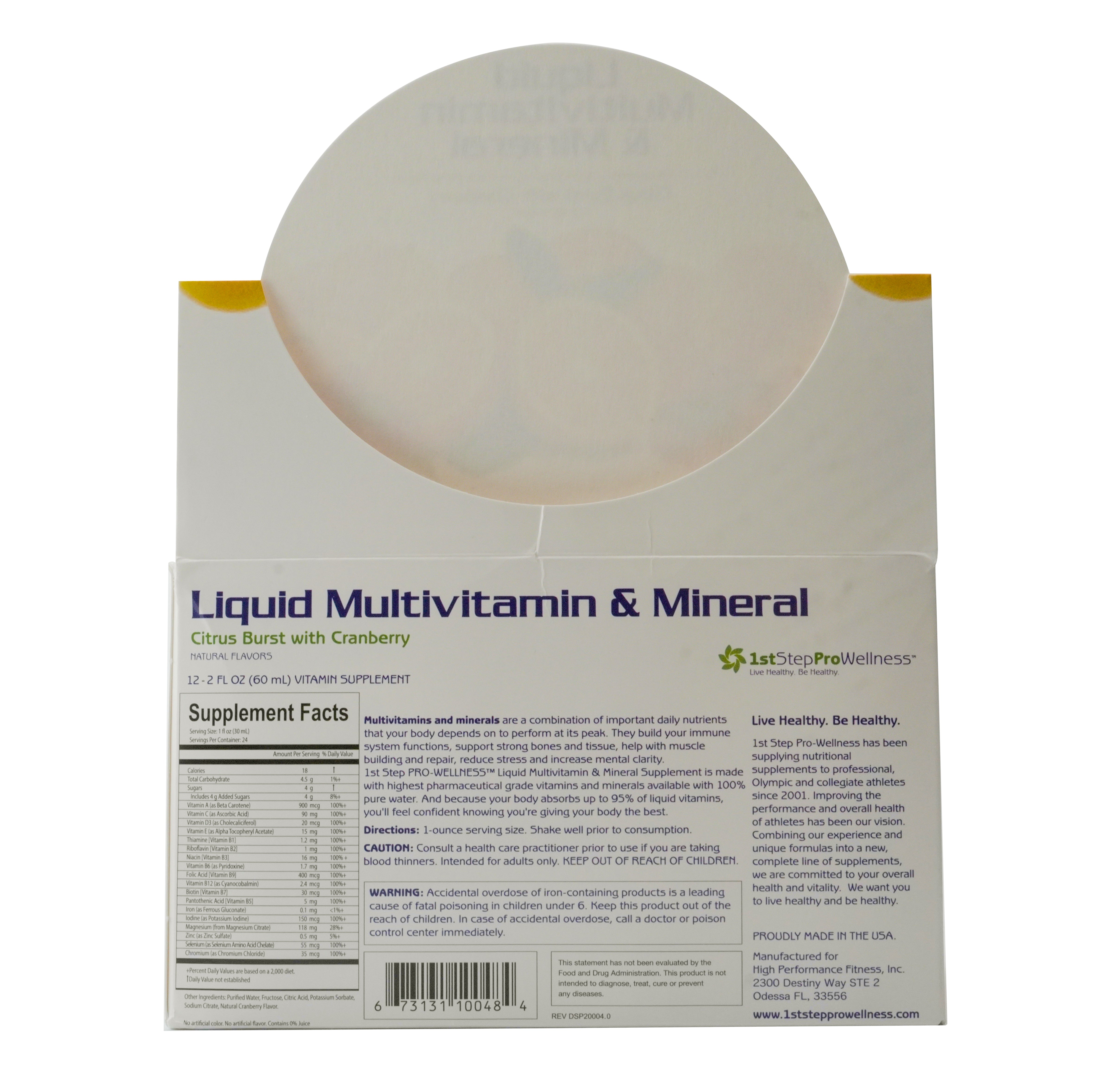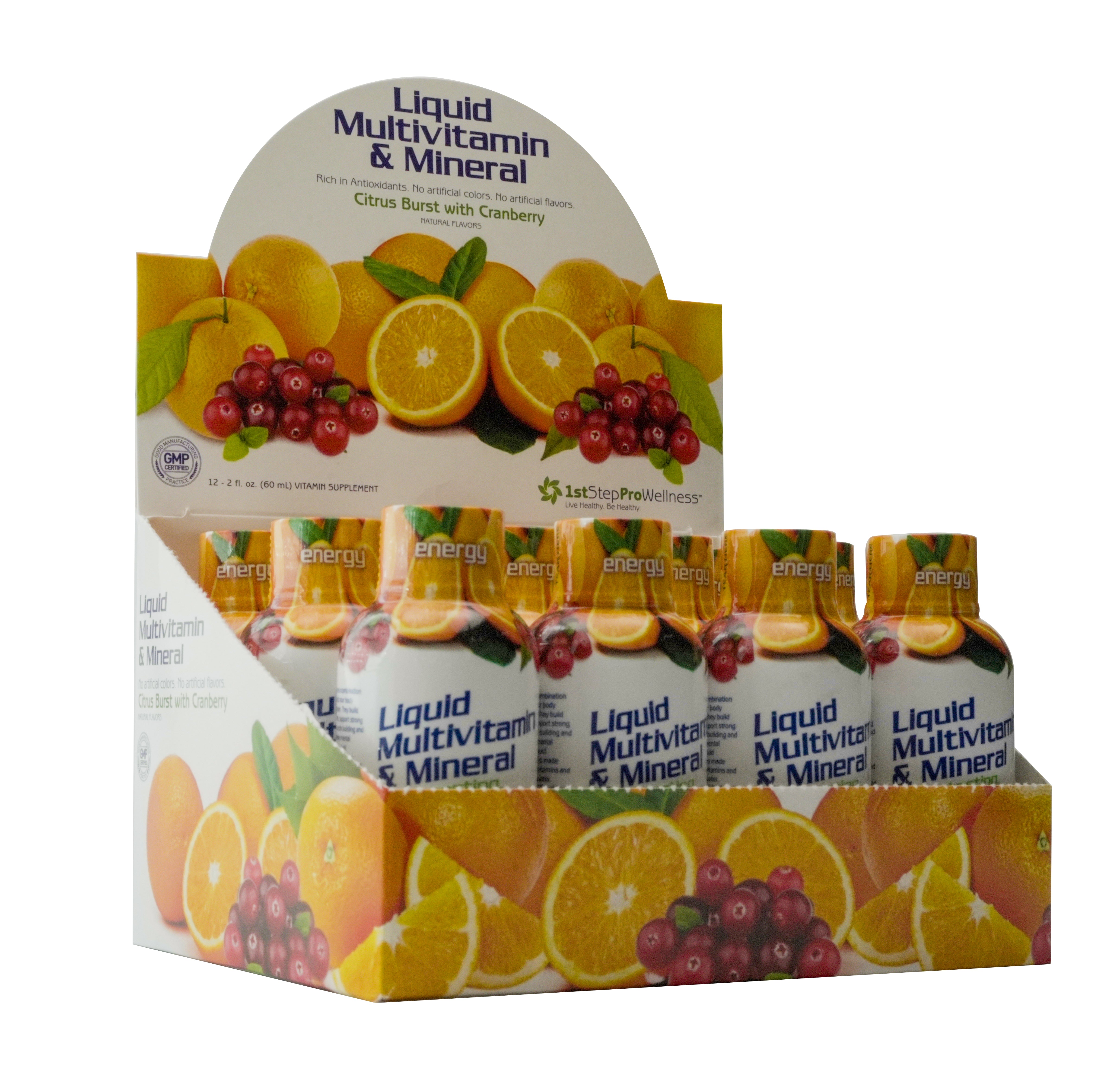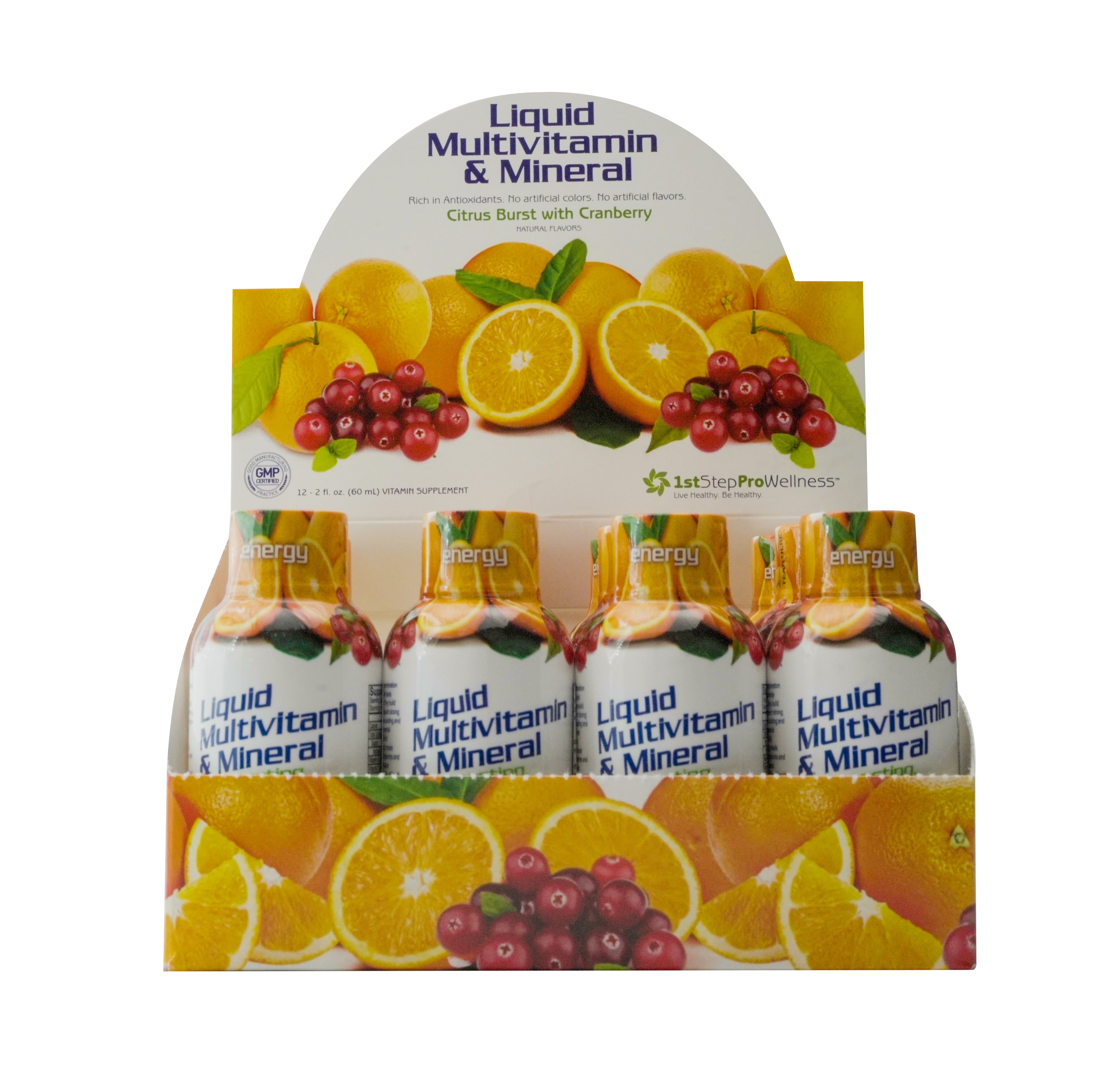 1st Step Pro-Wellness’ Liquid Multivitamin & Mineral Supplement provides the body essential vitamins and minerals, and is made with 100% pure water, and sweetened with natural citrus flavor. Not only do we use superior ingredients to ensure the body gets the best nutrients possible, they also taste great! And because the body absorbs nearly 95% of liquid vitamins, each morning the body gets its best start.
